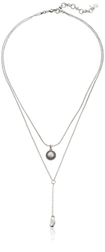 Double-layered necklace featuring faux-pearl halo pedant and Y-shaped strand with faceted-bead finish
