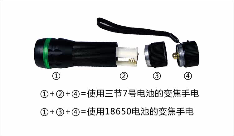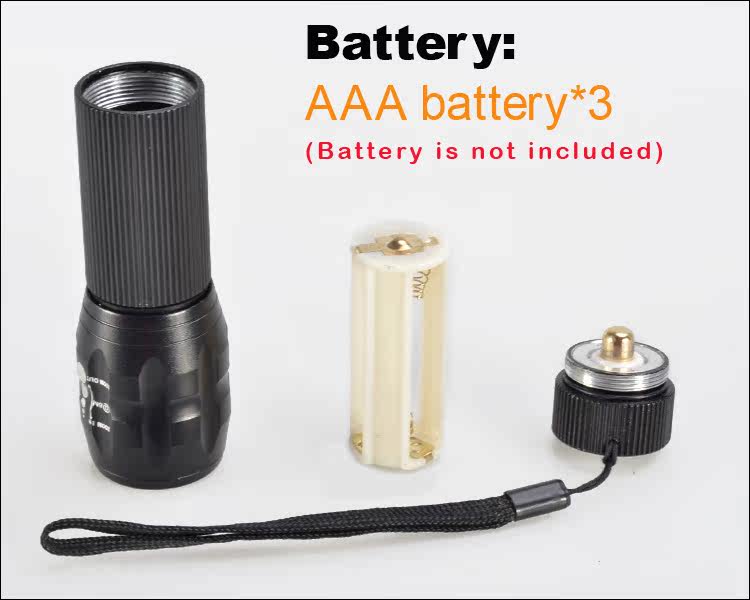 Zoom flashlight a lengthened ring, a set of AAA batteries, a charger, a