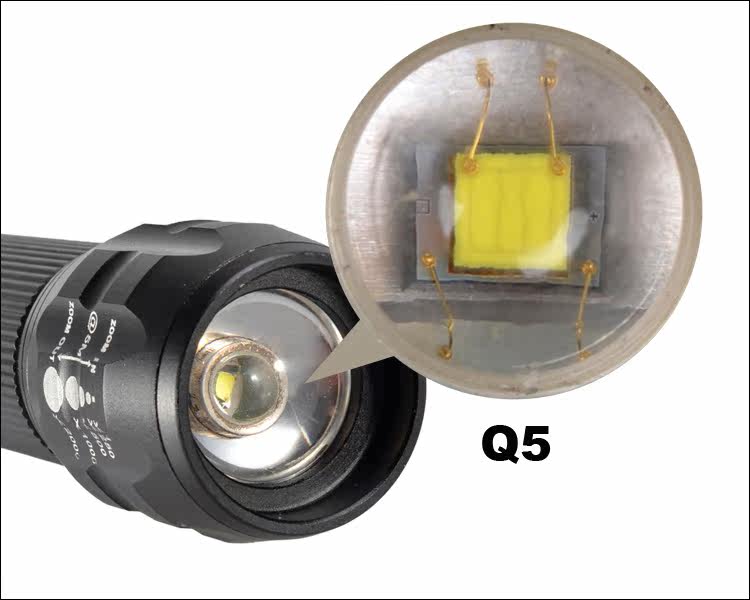 The latest CREE Q5 LED color is white, brightness up to 160~235 lumens. Long life, a range of 150 meters at night,the lamp life of up to 100000 hours or more.