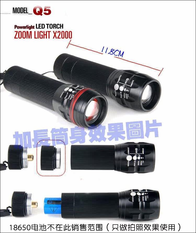Patent instant zoom, telescopic focusing according to their own requirements, control of the aperture size, and 0.3 seconds to complete the zoom, the real lightning zoom, perfect white aperture. The projection distance is 4~5 times of the same flashlight. Resin optical lens, fall damage and high light transmittance. Ultra high brightness,, focused,distance of 80 cm brightness can reach 65000LX. The flashlight is selling brightness: lumen - light units or the bigger the LX value is more bright