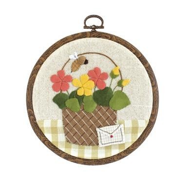 アップリケとししゅうで作るインテリア壁飾り。専用フープ付。技術レベルは初級~中級者向です。
