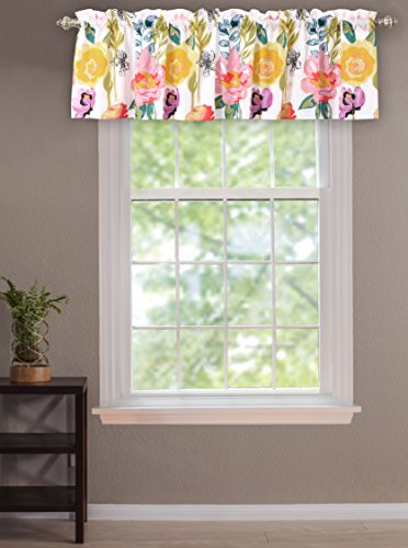 Studio : Greenland Home Fashions Publisher : Greenland Home Fashions Binding : Misc. Product Description Cheer up your space with the artfully chic Watercolor Dream window valance. Sprouts of color bloom beside stenciled flower illustrations on a white ground. This traditional floral valance is perfect for any window. 100% polyester face, back (valance is lined, 2 ply). Pocket for up to 3" rod for hanging. Dimensions: Approx. 84" wide x 19" long, plus a 2" header, with 3" rod pocket. Machine washable. 0