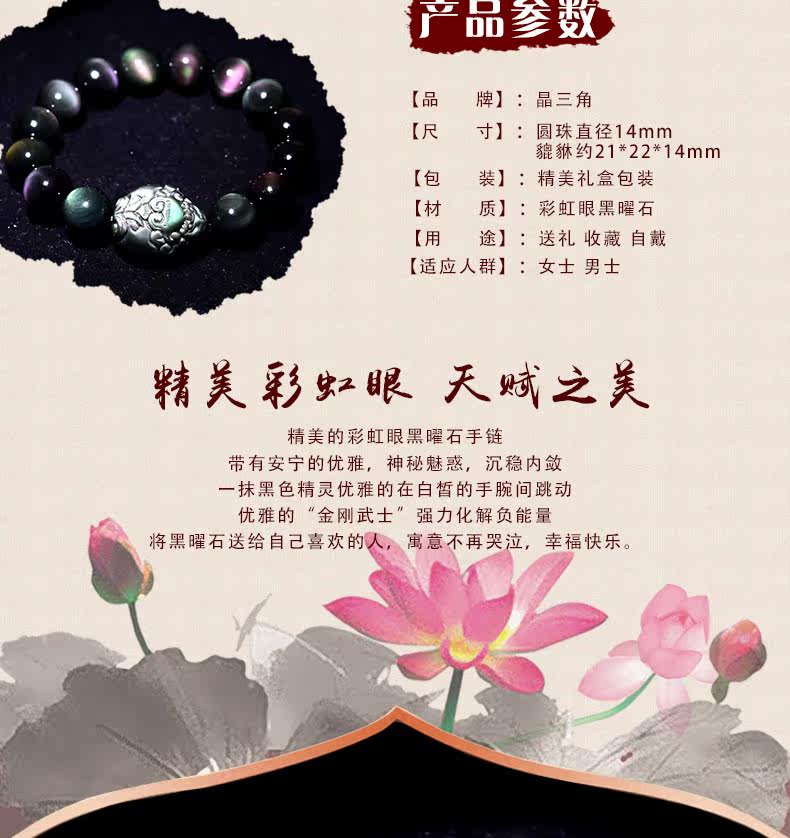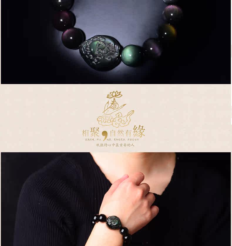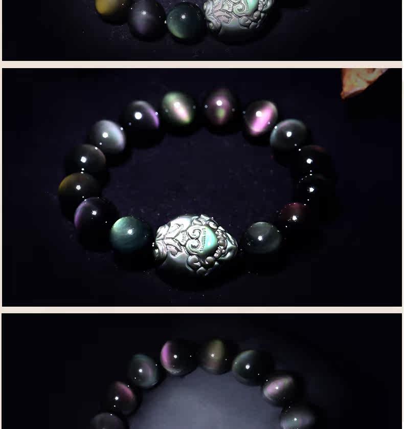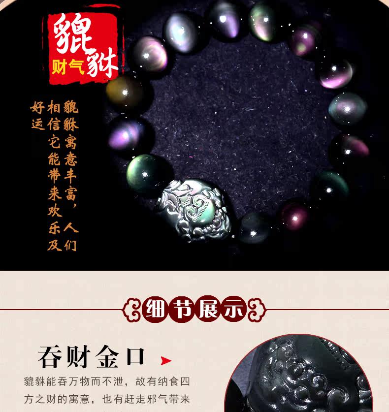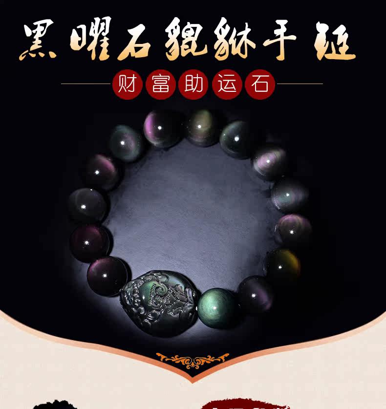 开光天然彩虹眼黑曜石貔貅手链男士女款佛珠手串转运情侣水晶饰品