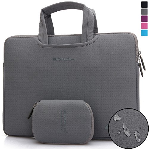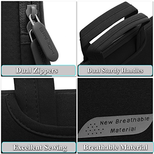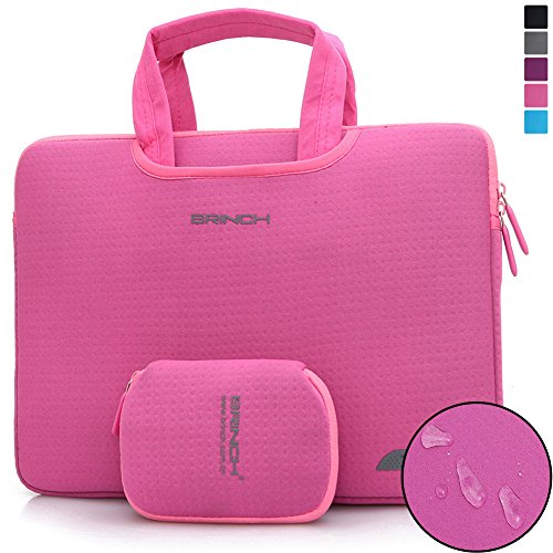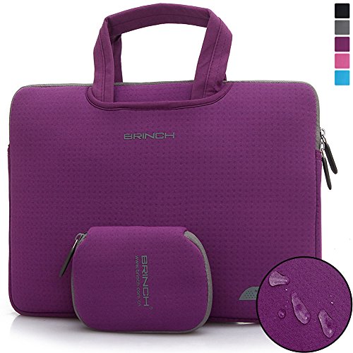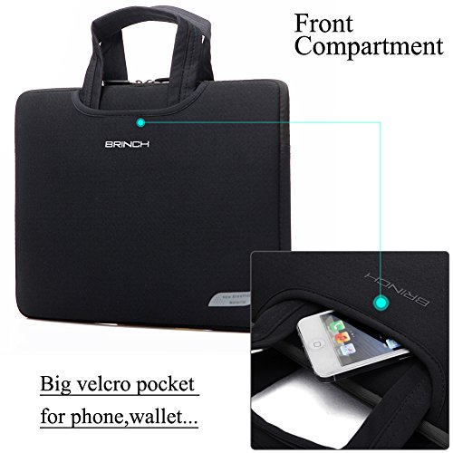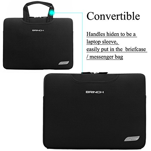 This Brinch Laptop Case / Bag offers a simple and yet fashionable way to protect your MacBook, laptop or notebook computer while you are on the go. Built for Protection The safety of your laptop is our primary concern. Featuring a polyester foam padding layer and nylon lycra fabric lining, this bag effectively absorbs accidental bumps, reduces damages caused by impacts, and protects your computer from scratches. Designed for Convenience This case features top handles for you to carry your laptop in comfort, and two side pockets for storage of small items like power adapter and notepads. The handles can tuck away in the pockets when you do not need them, giving the case a simpler look.Feature