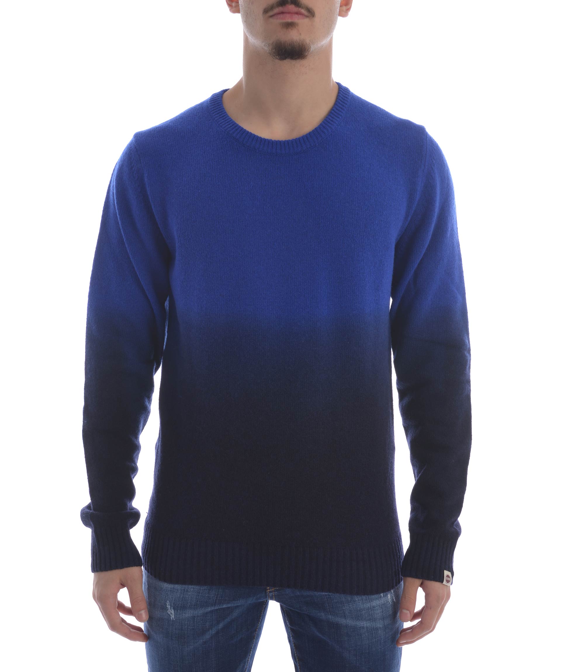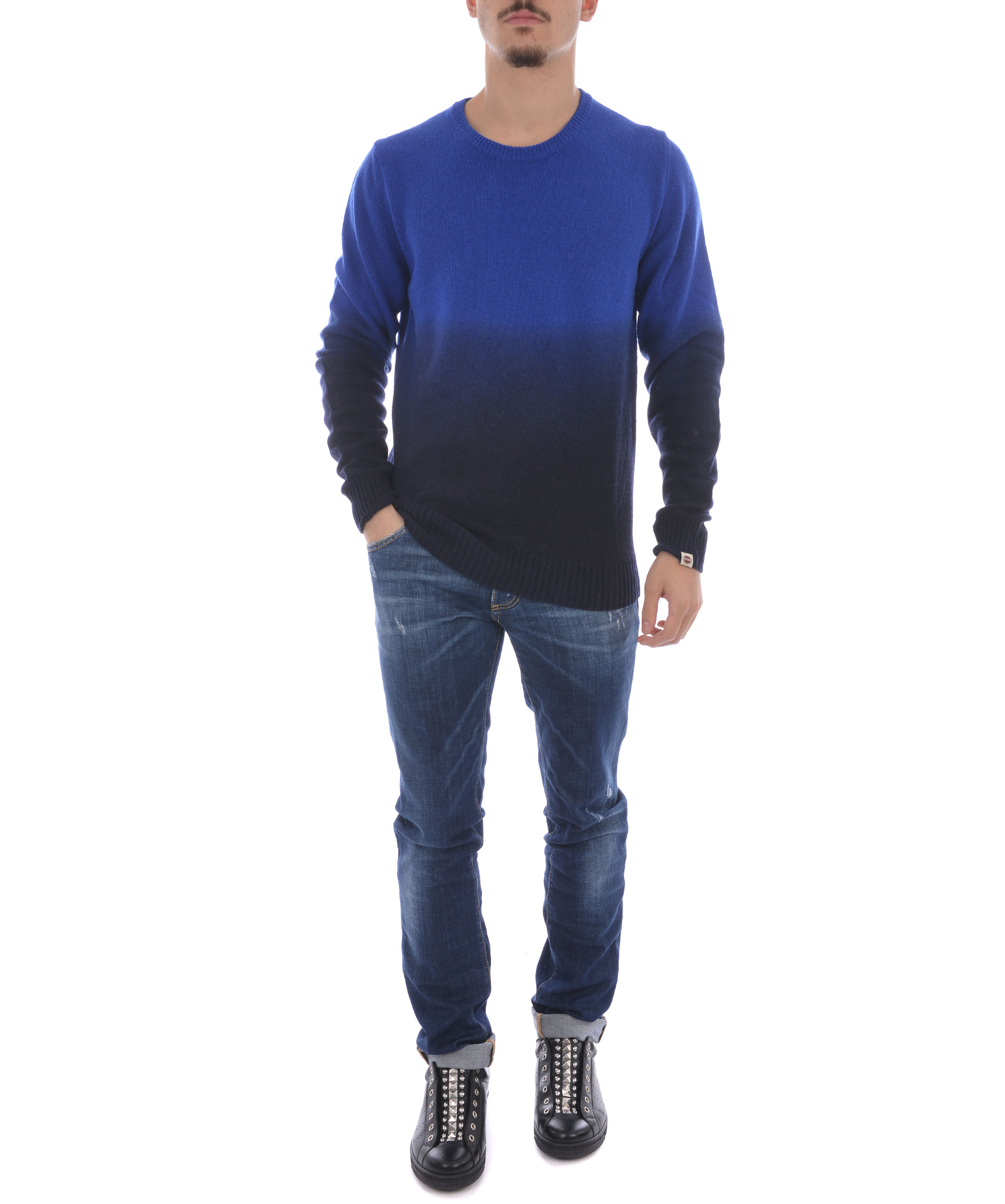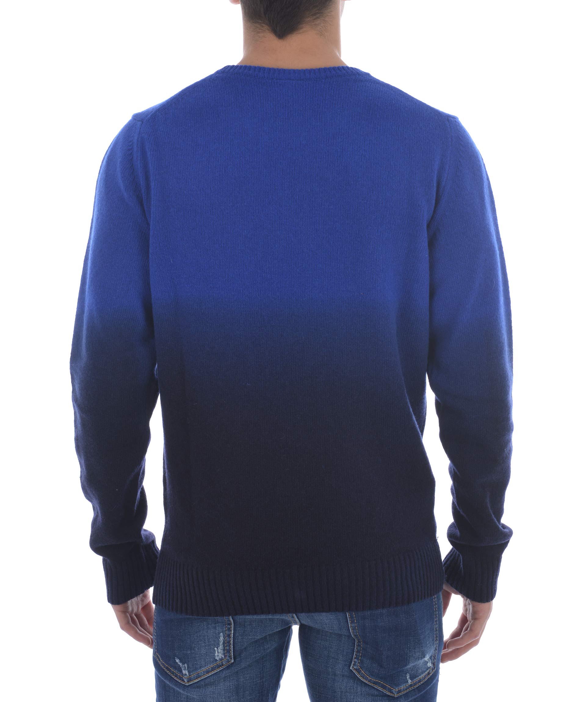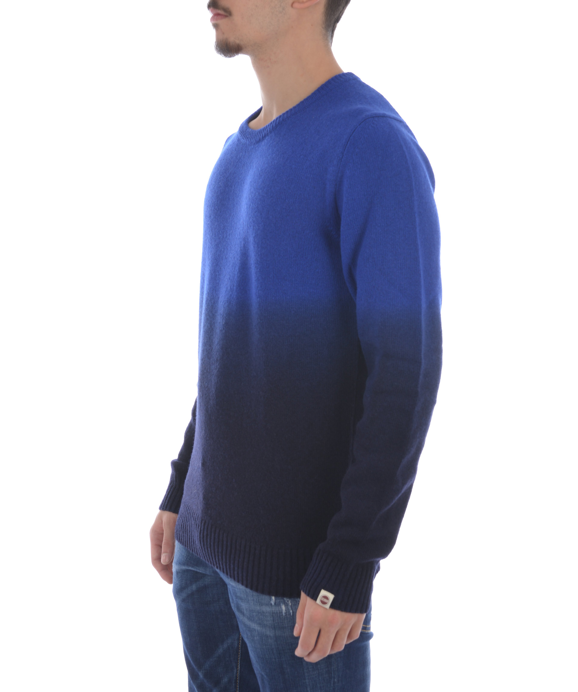 Maglia Colmar in misto lana Blu cobalto/Blu scuro sfumato. Girocollo, polsi e fondo a costine. Patch logo sul polsino sinistro. Misura in foto M 80% lana, 20% poliammide