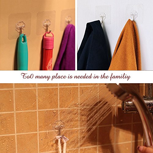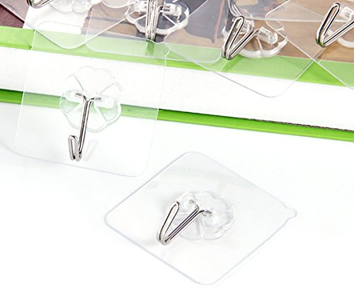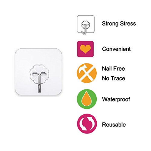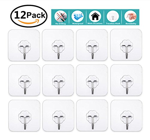 12 Pack Adhesive Hooks(13.2lb/6kg) Sticky Wall & Ceiling Hooks Nail Free Transparent Reusable Heavy Duty Hook for Bathroom and Kitchen No Scratch Waterproof and Oilproof