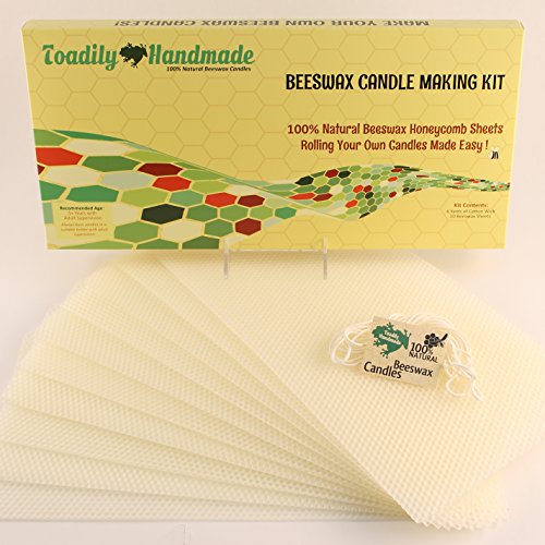 Make Your Own Beeswax Candle Kit - Includes 10 Full Size 100% Beeswax Honeycomb Sheets in IVORY and Approx. 6 Yards (18 Feet) of Cotton Wick. Each Beeswax Sheet Measures Approx. 8" x 16 1/4".