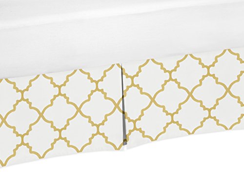 -. Title : White and Gold Trellis Lattice Crib Bed Skirt Dust Ruffle for Girls Baby Bedding Sets