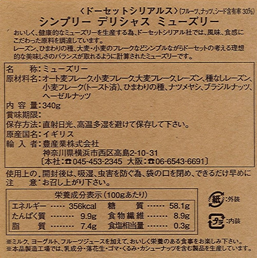 Raisins, sunflower seeds, barley · wheat flakes etc. Simple but ideally thought of Dorset is a muesli that was calculated to be able to balance taste.