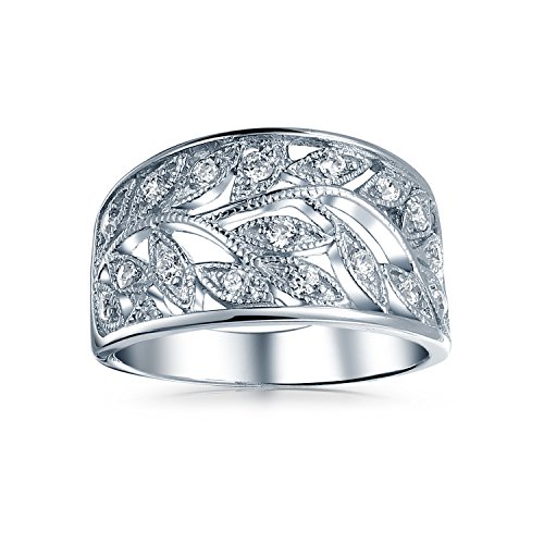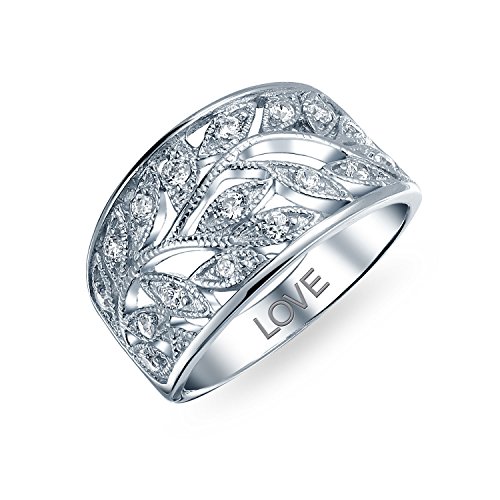 -. Title : Bling Jewelry Vintage Style Milgrain Style CZ Leaves Band Leaf Ring Sterling Silver