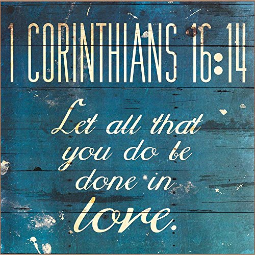 - Features scripture verse 1 Corinthians 16:14 against wood plank look