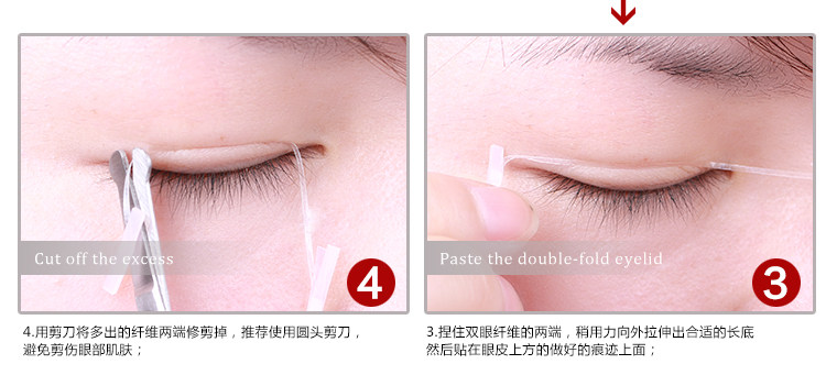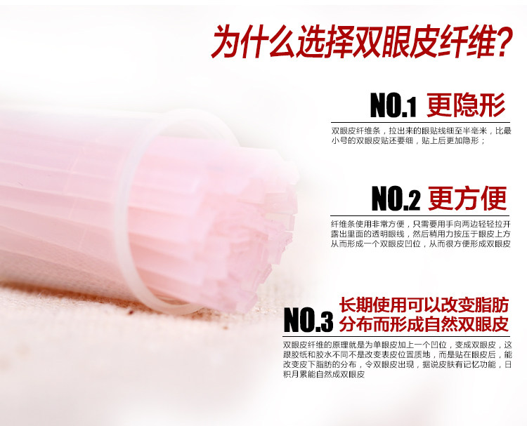 如果亲是第一次使用双眼皮纤维,一定要多多练习 只要掌握技巧 其实贴起来很简单呢 亲,纤维是卡在眼皮内的产品哦,双眼皮贴只是放在眼皮上就OK了.