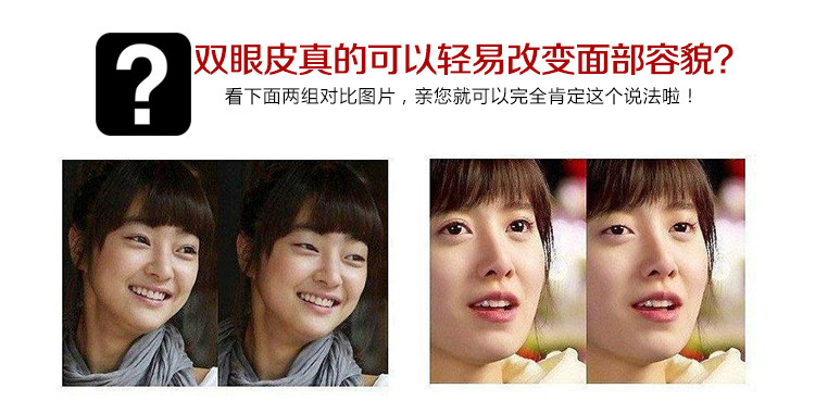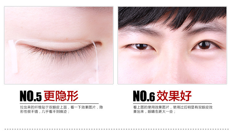 所以是不一样的产品哦,亲们要区分开哦~对于眼皮较厚,泡眼,眼皮脂肪过多的MM,如果贴1条不行的话 可以尝试并排再贴1~2条哦 亲,直到眼皮被撑起来为止