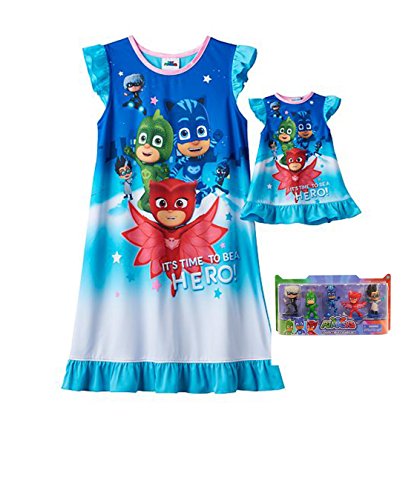 -. Title : PJ Mask Gown and Doll Gown with 5 Figure Toy Bundle Size 6