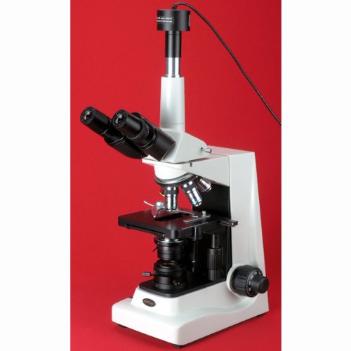 Microscopes are instruments used to enhance the resolution of an object or image. Types include compound, stereo, or digital. Compound microscopes use a compound optical system with an objective lens and an eyepiece. Stereo microscopes show object depth in a three-dimensional image. Digital microscopes are used to display an image on a monitor, rather than looking through a lens. Microscopes can have monocular (one), binocular (two), or trinocular (three) eyepieces, with varying magnification abilities. Magnification ability refers to the size of an image. Resolution, also known as resolvant power, refers to the clarity of the image. The interaction between field of view (FOV), numerical aperture (NA), and working distance (WD) determines resolution. Microscopes can control magnification through a fixed focus, or through a range of adjustments. They can also utilize LED, fluorescent, and mirror light sources to help control viewing capabilities. Microscopes are widely used in education, lab research, biology, metallurgy, engineering, chemistry, manufacturing, and in the medical, forensic science, and veterinary industries. United Scope manufactures microscopy equipment and accessories under the brand name AmScope. The company, founded in 1996, is headquartered in Irvine, CA. What's in the Box? - AmScope T680A microscope with double-layer mechanical stage