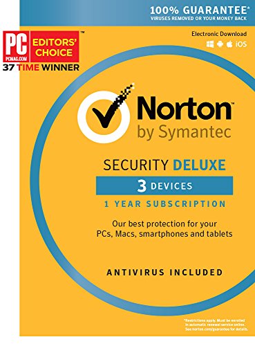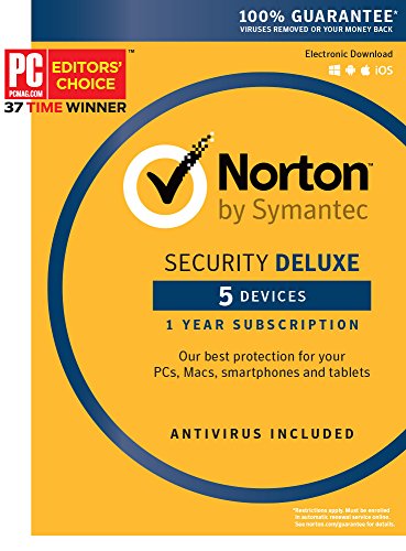 Norton Security Deluxe protects your identity and financial data from cybercrime. If you pay your bills on your smartphone, shop on your tablet or keep important financial information on your laptop, get Norton Security Deluxe for one easy solution that protects up to five of your devices-PCs, Macs, smartphones, and tablets-all backed by our 100% guarantee. To be eligible for the Virus Protection Promise, you must purchase, renew or upgrade your Norton subscription directly from Symantec, or subscribe to the Norton Automatic Renewal Service.Feature