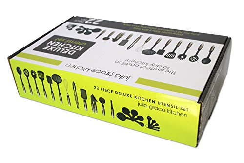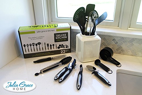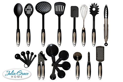 -. Title : 22 Piece Kitchen Utensils Set from Julia Grace Kitchen | Home Cooking Tools & Gadgets | Spatulas, Turners, Tongs, Pizza Cutter, Can Opener, Whisk, Grater, Peeler, Measuring Cups & Spoons