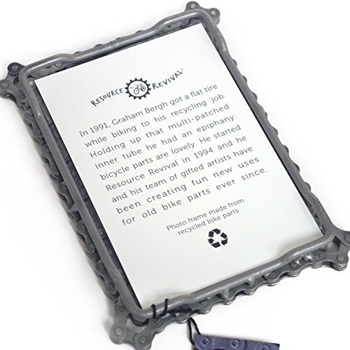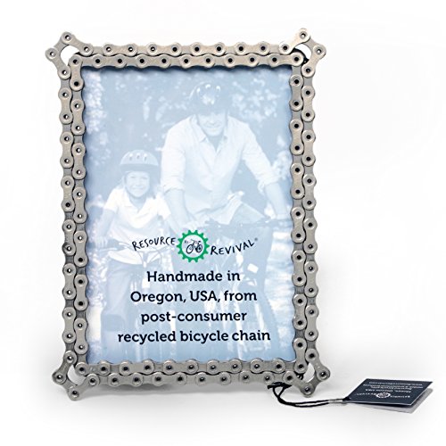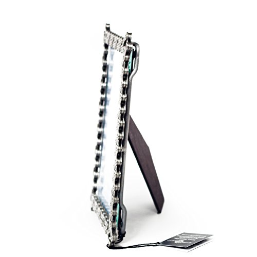 Our classic bicycle chain picture frames have been praised by critics from coast to coast. Handmade from recycled bike chain with a sturdy and time-tested easel back/stand. Stands vertically or horizontally. A great gift for a bike lover or for anyone who wants to display a photo of their favorite cyclist.