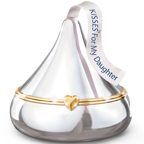 Feature : Enjoy a "tasteful" treat for a dear daughter with this HERSHEY®'S KISSES® Heirloom Porcelain® music box only from The Bradford Exchange / Inspired by the classic chocolate candies, this music box is expertly handcrafted of triple-fired Heirloom Porcelain for lasting beauty / Limoges-style music box is tantalizingly "wrapped" in a sparkling, hand-applied silvery finish / Music box opens on a Limoges-style golden hinge and closes with a heart-shaped clasp / The top of this HERSHEY'S KISSES collectible is crowned by a white HERSHEY'S KISSES plume inscribed with "KISSES for My Daughter"