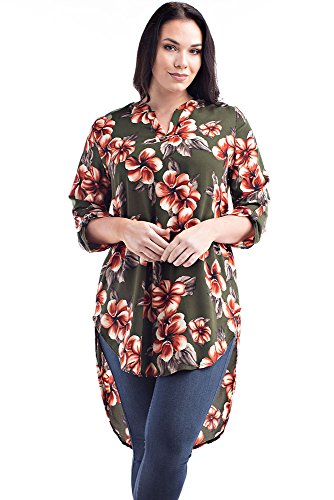 Betsy Red Couture Women's Plus Size Dress Shirt Tunic