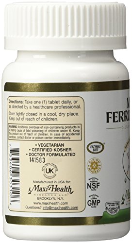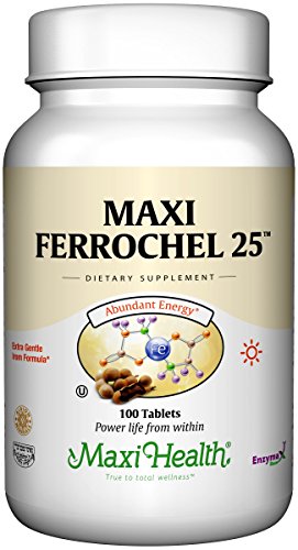 Maxi Health Ferrochel 25 mg - Extra Gentle Iron Formula - Supplement - 100 Tablets - Kosher