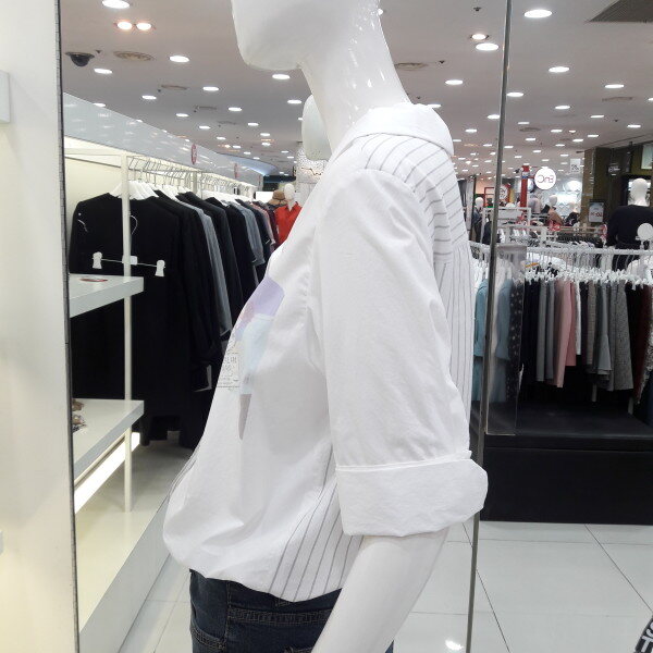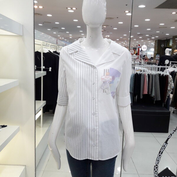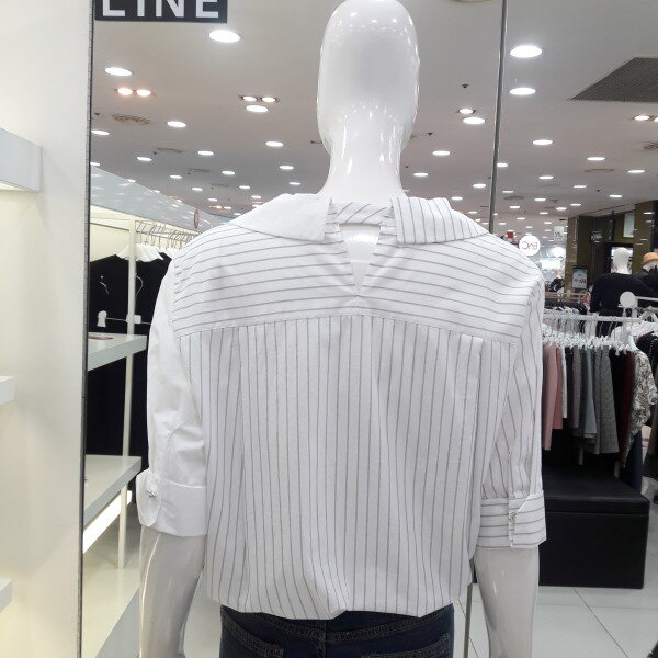 18년 신상 가격인하된 세련된 분위기의 블라우스입니다 넥선이 예쁘며 롤업 소매가 여성스럽고 멋스러운 디자인입니다 파스텔돈의 한쪽 스트라이프가 멋스러우며 슬랙스 스커트에 연출해보세요