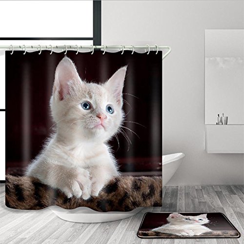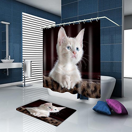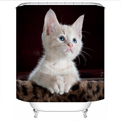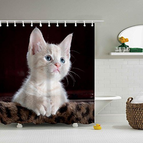 Cute white Cat Printing Thickening Waterproof and Mold Resistant Toilet Bathroom Shower Curtain (59Wx71L)