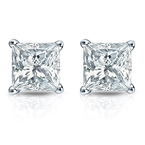 -. Title : 14k Gold 4-Prong Basket P.R.Incess-cut Diamond Stud Earrings (1/3 ct, Good, I2-I3) Push-Backs