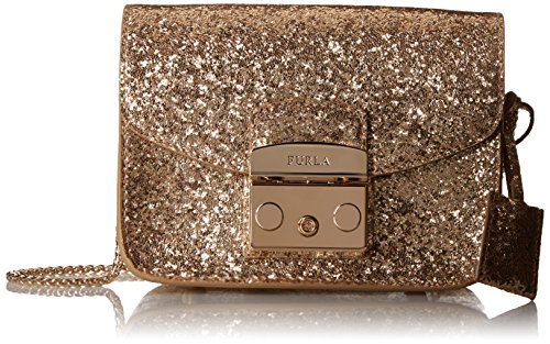Metropolis Mini Cross body with chain strap, front clasp closure, 1 interior open pocket, working lock and key provided, 100 percent leather, made in Italy.Feature