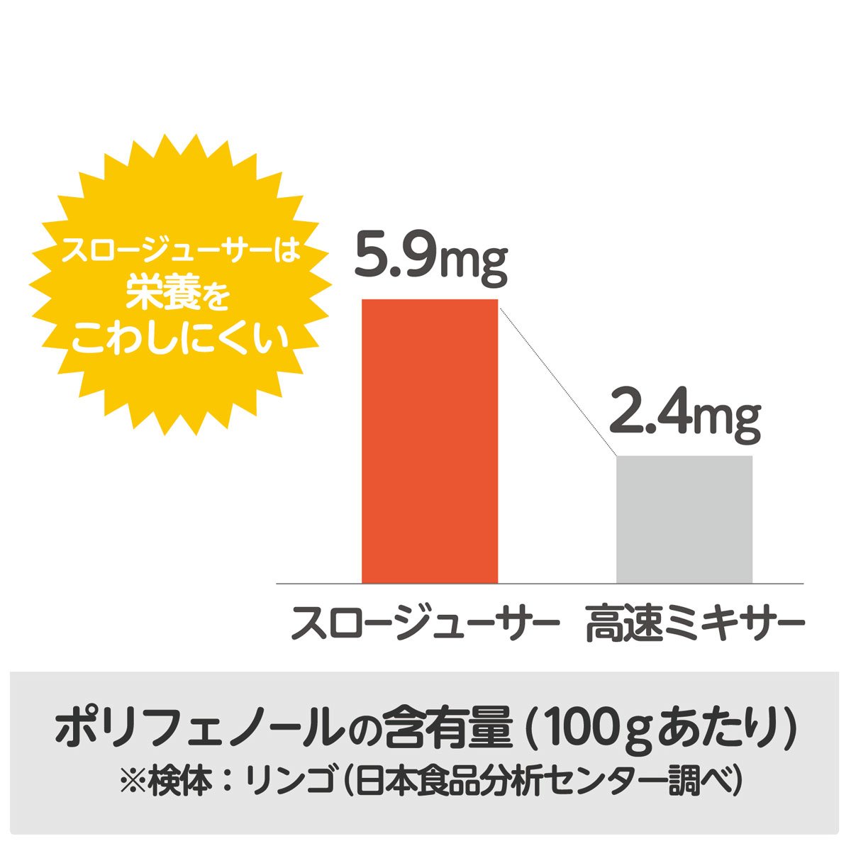 ● Because it squeezes ingredients slowly, nutrients are not easily broken, 100% freshly squeezed juice can be enjoyed at home every day