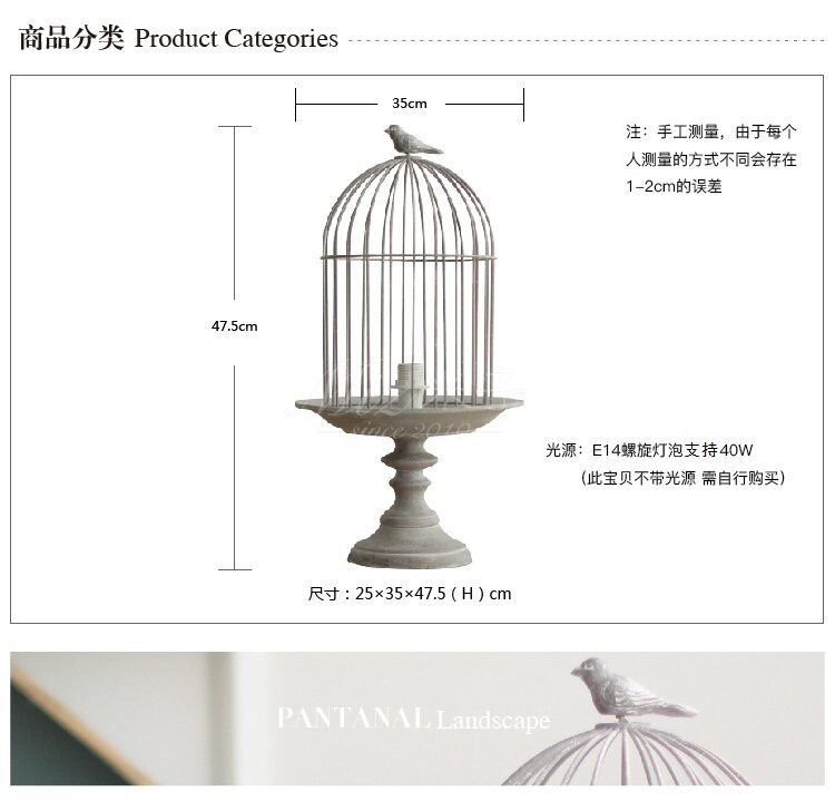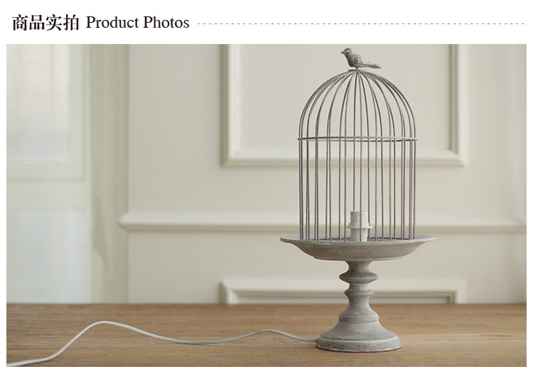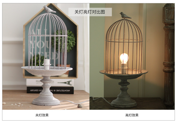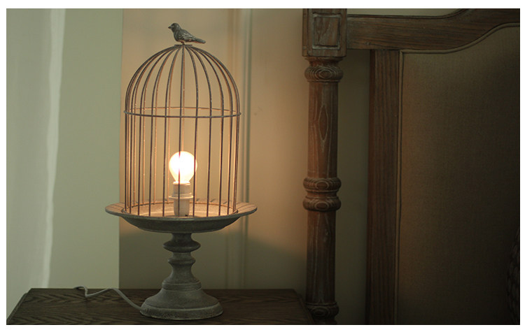 欧式复古工业风高脚铁艺鸟笼台灯 卧室床头灯装饰灯