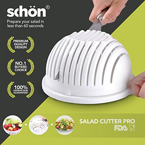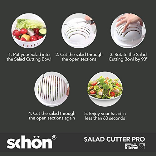How to Use(The user manual included in the package): 1. Put ingredients into the bowl Put the ingredients into the bowl and wash them under the running water from the tap. Hold the salad bowl for a while and shake it to drain the water. Make sure the ingredients are no more than 3/4 of the bowl 2. Close the bowl Make sure that the upper cover is fixed well with the base, turn over the gadget and put it on the table. 3. Cut the ingredients through the cracks Use a long enough knife to cut the ingredients through the card slot into small pieces to make salad. We advise you to use the knife with about 18cm to cut. 4. Rotate the bowl by 90° Rotate 90 degrees of the upper cover and fix it again with the base. The special notches will help you to do this for exactly 90 °. 5. Cut the ingredients again Following the step 3, cut the ingredients again to make them smaller. You will get more perfect pieces. 6. Done the making The salad is ready. Enjoy your delicious salad. Please note: 1.Do not put too much ingredients,in the bowl of 3/4 is perfect 2.Do not lock the ingredients,do not have gap and to make sure the cover fully fit 3.Please only turn the bowl,do not with the food 4.Please use the knife with about 18cm to cut. 0 |