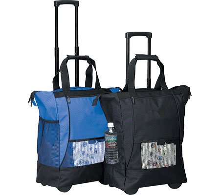 Studio : Goodhope Bags Publisher : Goodhope Bags Binding : Apparel Product Description Made of 600D polyester, this easy-to-use tote is ideal for carrying loads of catalogues and samples home from a convention. Unzip the wide opening at the top to reveal a huge capacity compartment. Additional features include a mesh pocket on the side for a water bottle and a mesh and zip pocket up front for a show directory or incidentals. The sturdy pull up handle and inline skate wheels make this convenient case a pleasure to pull through conventions and during travel. 0