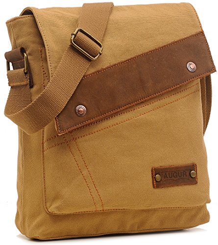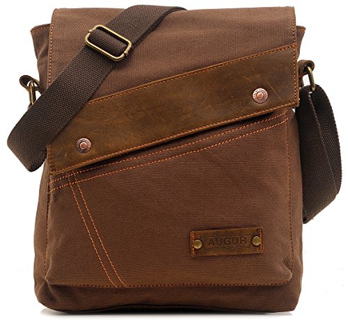 Product Description This messenger bag adopts finished products washing process with high-quality cotton canvas matching with leather. The fabric feels more soft and skin-friendly. With cool style and canvas materials, it brings you more casual feel and happy to carry it all the time. - Fabric: Canvas and true leather - Size: (8.7"L x 11"H x 2.4" W ) - Net weight: 600g - Adjustable Shoulder Strap 0