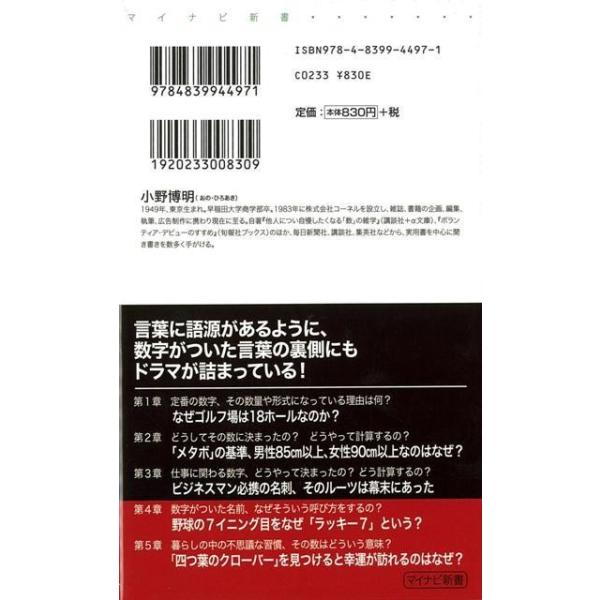 【商品説明】 定価(税込み):896円 値引き:5% OFF 言葉に語源があるように、数字がついた言葉の裏側にも、さまざまなドラマが詰まっている!日常や仕事に関わる数字、不思議な基準や習慣、数字のついた慣用句、ちまたにあふれる不思議な「数字の謎」を解く! バーゲンブック 新品 特価 格安 スポーツ アウトドア ゴルフ ドラマ |