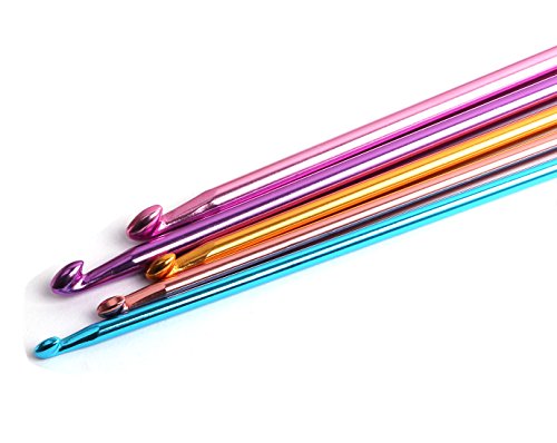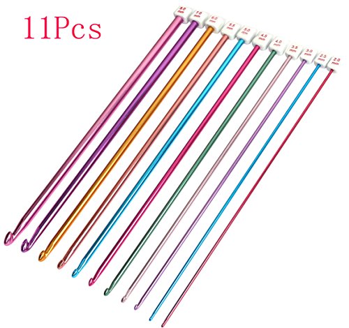 Penta Angel 11 Multi-Size 10.6 Inch Aluminum Grip Tunisian Afghan Crochet Hook with Square Cap for Cross Stitch Knit Yarn Pattern Project (2mm to 8mm)