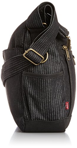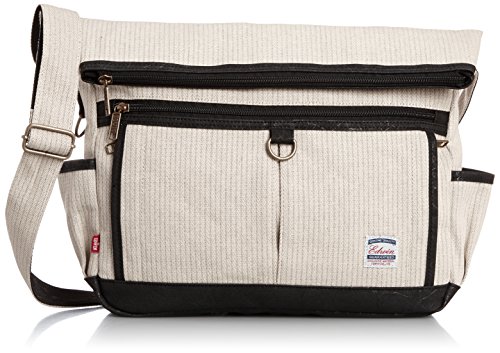 -. Feature : 原産国:中国 / 表地: コットンストライプ・合成皮革 / タテ25cmxヨコ34cmxマチ10cm / ポケットの数:9(外側6/内側3) / 重量:450g / ショルダー全長:129cm