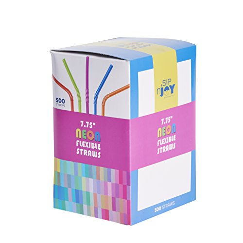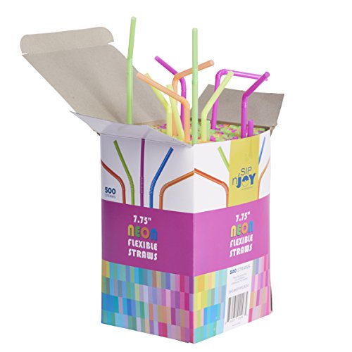 Neon Colored Drinking Straws (500-Count) Flexible, Disposable and Fun | Birthdays, Parties, Barbecues | Milk, Soda, Water and Alcohol | Kid Friendly, Assorted Colors