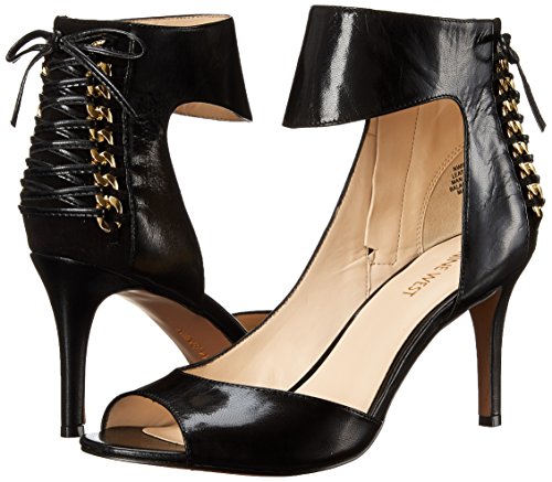 Studio : Nine West Publisher : Nine West Binding : Apparel Product Description Side-zip closure. Decorative chain with lace and bow detail at heel. Open-toe design. Synthetic lining. Lightly padded footbed. Man-made outsole. Wrapped heel. Imported. 0