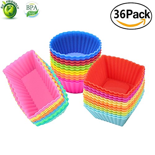 Silicone Cupcake Muffin Baking Cups Liners 36 Pack Reusable Non-Stick Cake Molds Sets