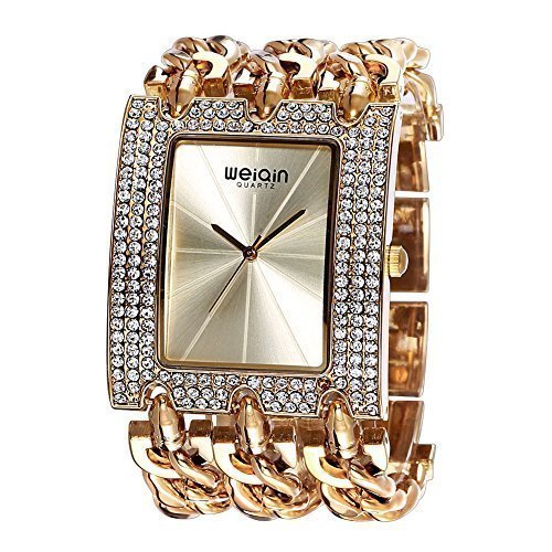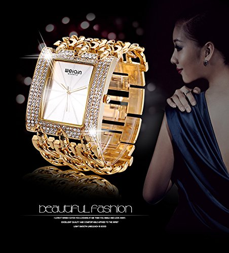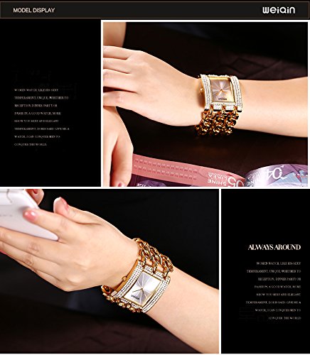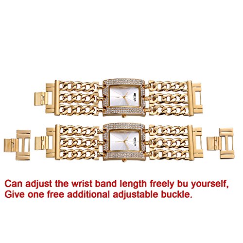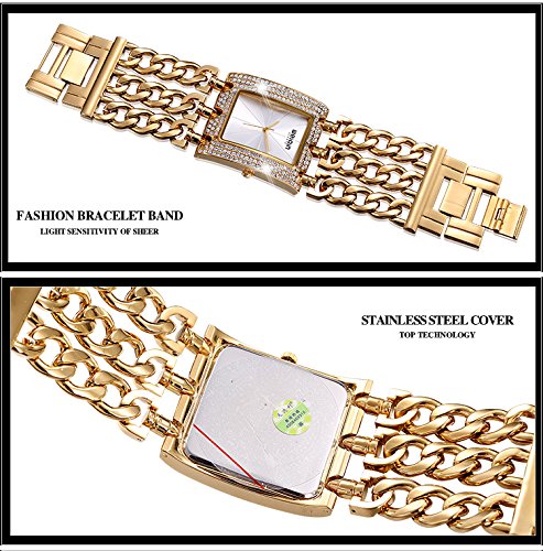 - ✿LUXURY ELEGANT DESIGN: Gold chain watch with the same color index casual style, along with rhinestone Square case, effortlessly elegant and luxury, showing the time clearly.