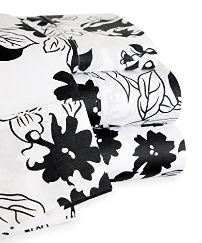 Trade Linker 200 Thread Count Floral Sheet Set, King, Black/White