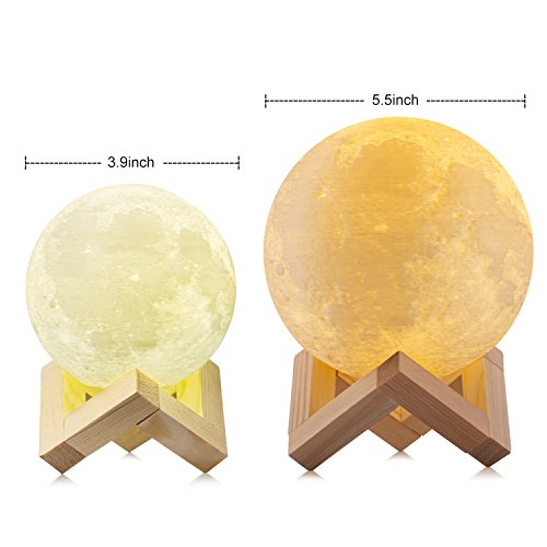 - PERFECT NIGHT LIGHT -The 3D print moon light offer you an impressively wide 360 degree beam angle.Comfortable 3000K Warm White and 6000K Cool White.It brings you mystery and romance, this night light is just what you need for an out of this world lighting experience.