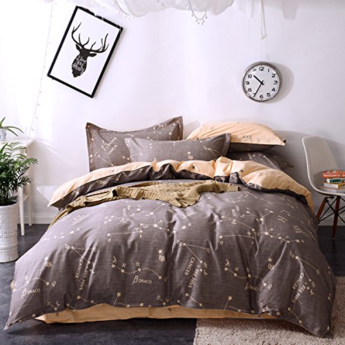 Mumgo Home Bedding for Adult Kids,Constellation Pattern 4PC Duvet Cover Sets Bedding Sets 100% Cotton(No Comforter),Queen/Full Size