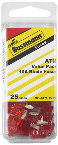 Bussmann (VP/ATM-10-RP) Red 10 Amp Fast Acting ATM Mini Fuse, (Pack of 25)