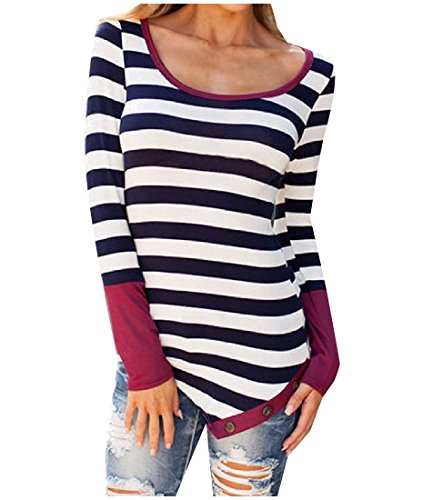 -. Title : Tootess Women's Basic Style Crew-Neck Strip Splice Baggy Loose Tops