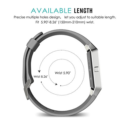 Fitbit Blaze Accessory Band, MoKo Soft Silicone Adjustable Replacement Sport Strap Band with Quick Release Pins for Fitbit Blaze Smart Fitness Watch, Wrist Length 5.90"-8.26" (150mm-210mm), GRAY