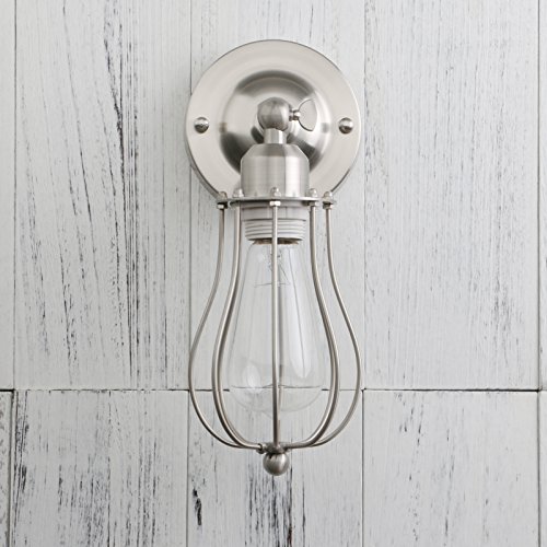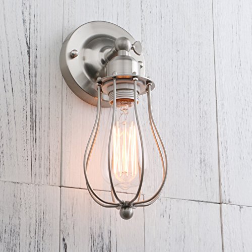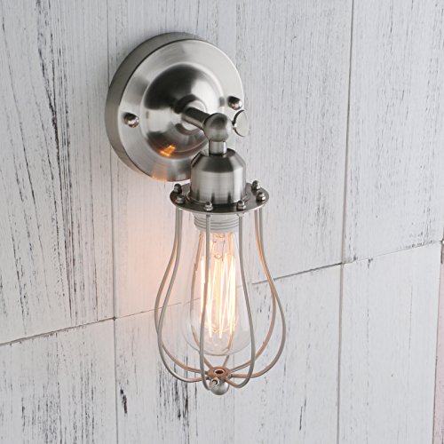 Permo Industrial Vintage Metal Wire Cage Wall Sconce Lighting Fixture Ceiling Mount Light (Brushed)