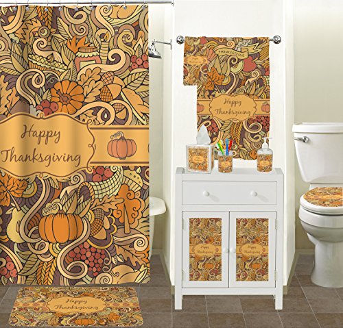 This beautiful thanksgiving design is hand drawn and includes many thanksgiving as well as fall traditions. The design colors represent all the beautiful fall colors of brown and orange. We have this pattern available to you in two colors - one is in the classic fall colors of browns and oranges, while the other background is brighter and also includes more reds and greens. We have chosen to use the more classic colors - however, it is super easy to make the change in our customization system.
