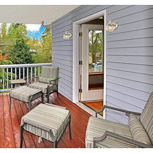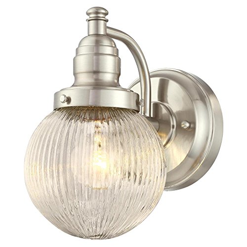 - Brushed nickel finish on weather-resistant steel with clear ribbed glass; uses one 60-watt medium-base light bulb (not included)